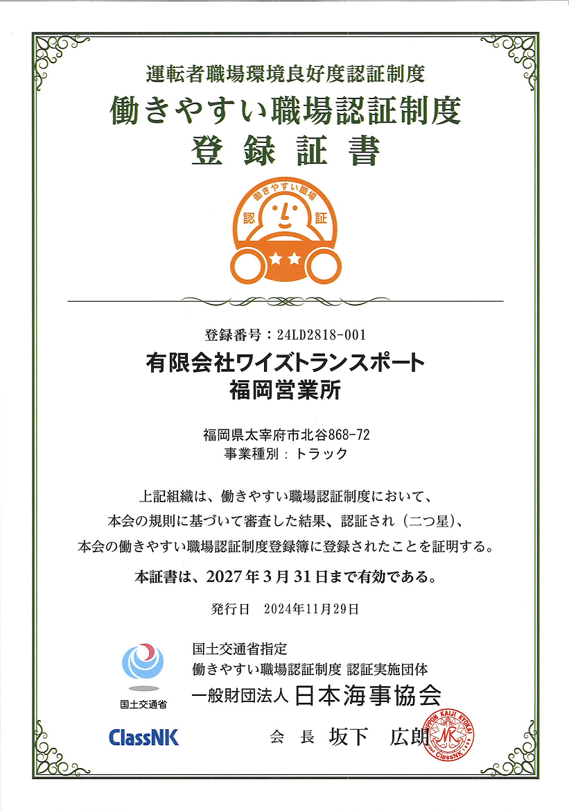 で、自社の配送業務の後方支援として輸送の品質維持に貢献